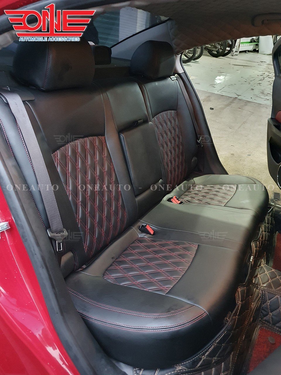 Ghế phụ xe được may đường chỉ màu đỏ tạo điểm nhấn nổi bật cho không gian nội thất xe