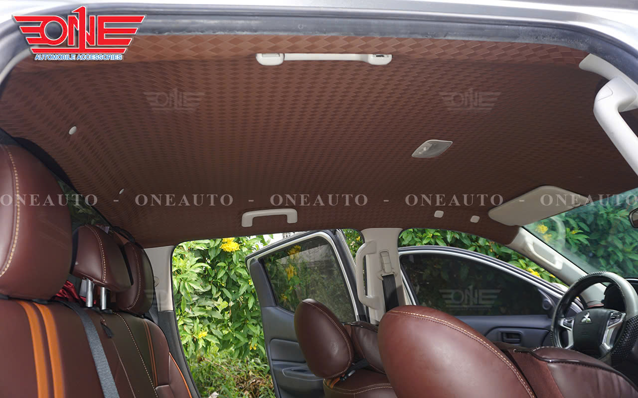 Bọc trần da ép họa tiết mang đến sự sang trọng và sạch sẽ cho nội thất xe Mitsubishi Triton
