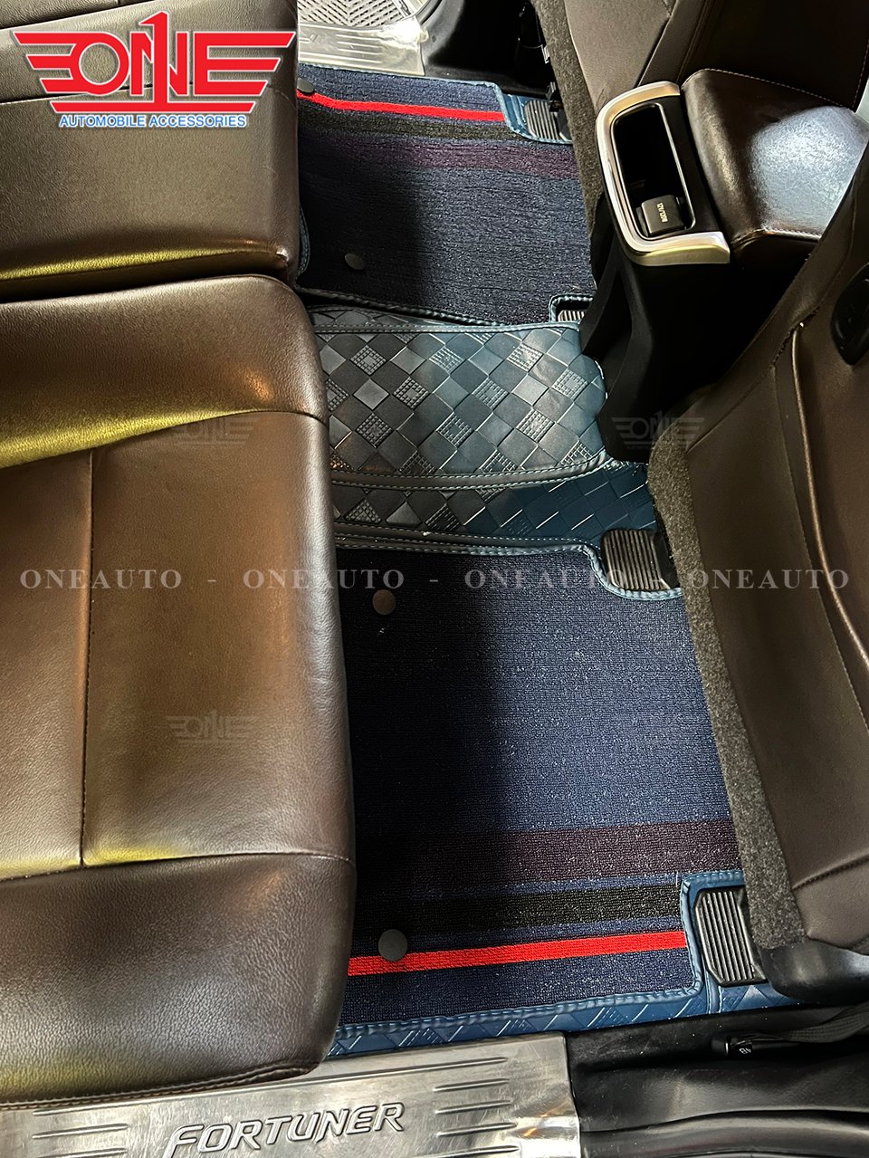 Hàng ghế thứ hai của xe Fortuner sau khi lắp thảm lót sàn ô tô 360 tại ONEAUTO
