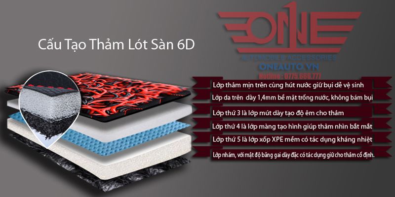Hình ảnh cấu tạo của thảm lót sàn 6D Nội thất o to ONEAUTO Biên Hòa