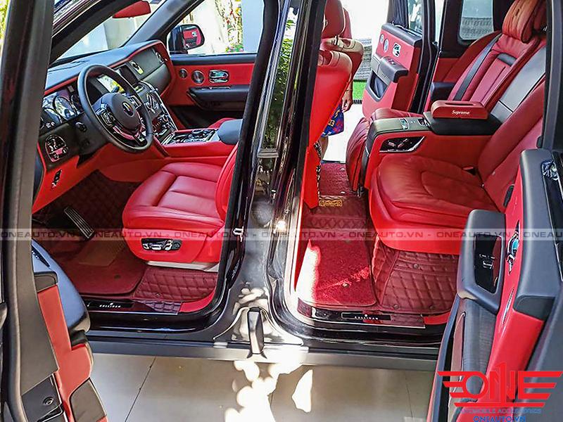 Nội thất đỏ kết hợp với thảm đỏ đô giúp cho xe trở nên nổi bật và khác biệt